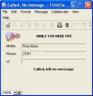 A voice message is received as a FirstClass message with a .wav file attachment. The first time you open the message, the attachment will play automatically.