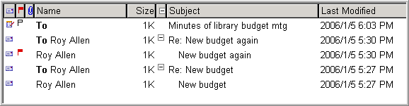 A grouping column is displayed to the left of the Subject column in this example. The grouping column shows tree view buttons beside grouped items.