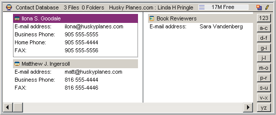 Displays a hierarchical (tree) view of FirstClass objects on top, and, when you are at your Desktop, a navigation bar on the bottom with buttons that you can click to launch FirstClass applications.