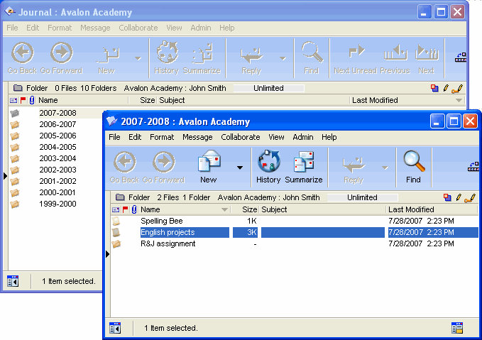 Do you maintain hard copy files from year to year to remind you of what projects you have done and how they turned out? Consider using FirstClass documents to maintain a journal from one year to the next. Record session notes, problems encountered, how you handled obstacles, new ideas, best practices, and so on.