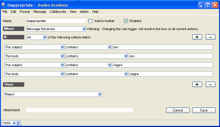 This is a sample mail rule that handles unacceptable language.