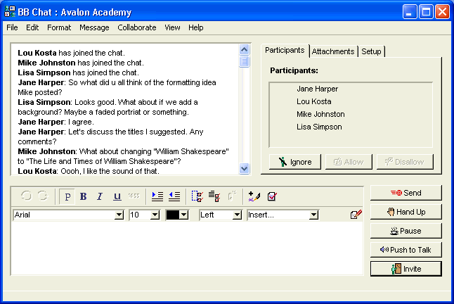 •       hold meetings through instant messaging (BB Chat)