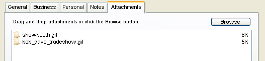 Michael adds links to some of his contacts' web pages on their personal address forms. Also, he has some pictures on file that were taken at a recent trade show hosted by one of his contacts, so he also attaches them to the personal address form of that contact.