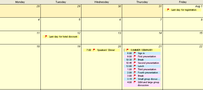 Michael uses the FirstClass calendar in the Summer Seminar conference to advertise the date of the seminar. At the same time, he books the location and any required resources.