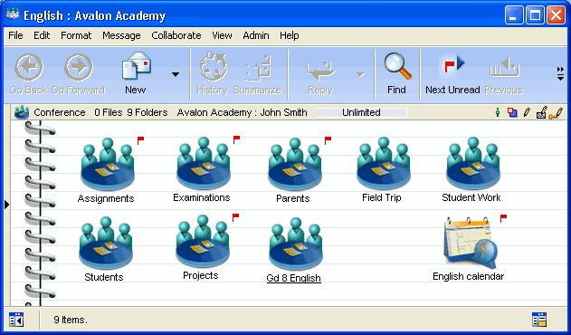 John collects all of his favorite graphics and stores them in the Rules & Resources folder of his English conference so he can find them easily. He accesses this folder by opening or highlighting his English conference, and then choosing Collaborate > Rules from the menu.