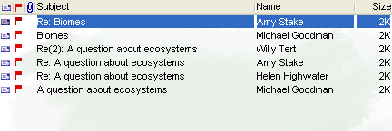 This example shows a Discussion area where multiple discussions are occurring. Each discussion is kept separate by threading.