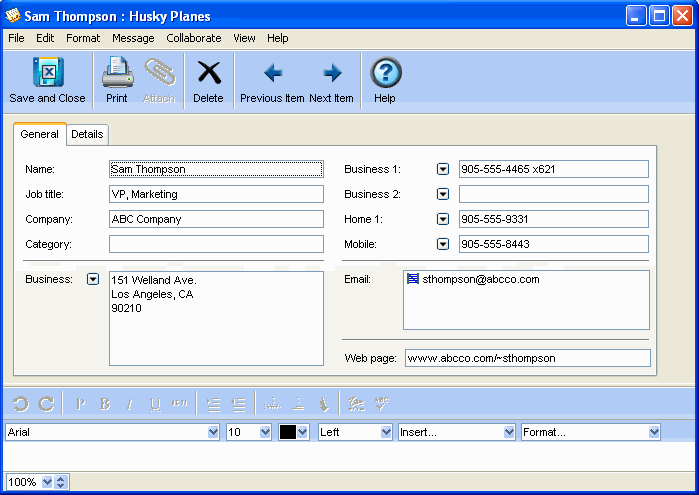 Michael Green is the Vice President of Sales and Marketing at Husky Planes. He has decided to reorganize his contact list, as he has business contacts mixed up with personal contacts, and he wants to share some of his business contact information with others.