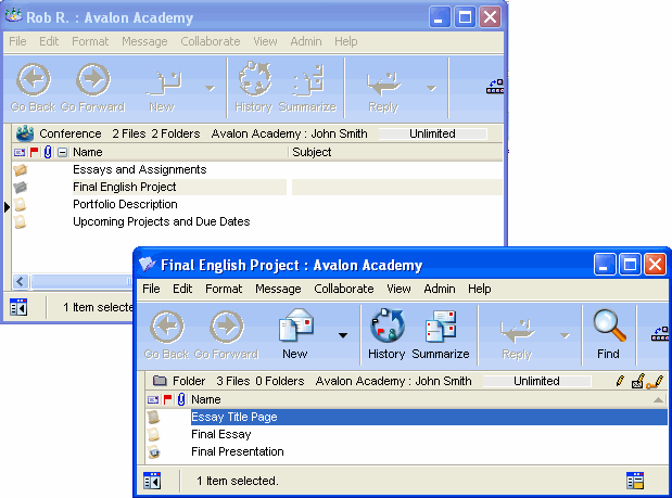 Want an easy way for students to showcase their best work? Create a personal FirstClass conference for each student to store or showcase their accomplishments throughout their school year.