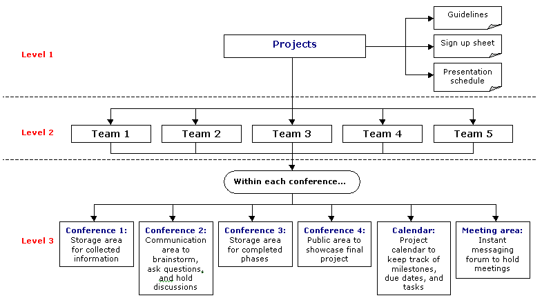 The Gurus use their Brainstorm conference to communicate with each other when they are in different locations. They also use it to summarize brainstorming sessions. Here is the result of a brainstorming session they held recently. The secretary put their notes into a graphic organizer, and then posted the results to a conference so everyone could see and then build on the initial ideas.