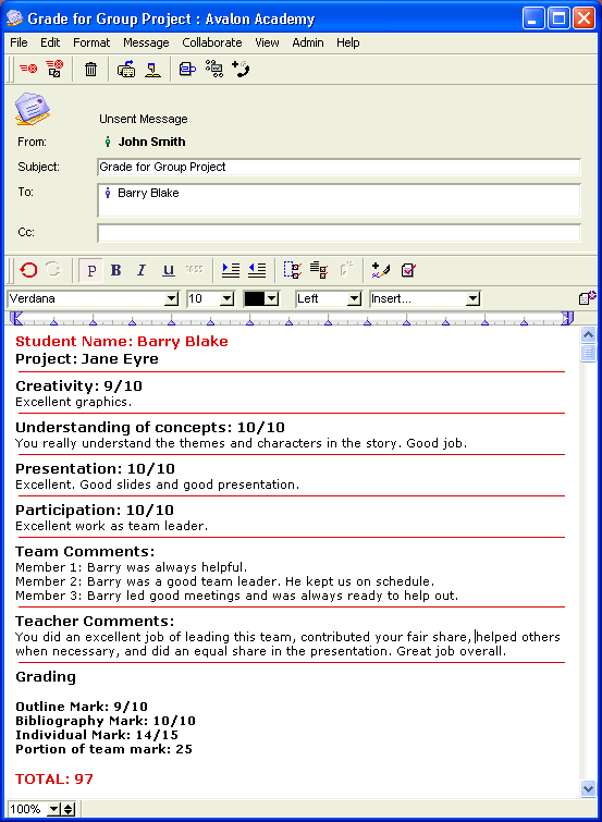 A team of four got together and decided to call themselves the "Jane Eyre Gurus". Their teacher required a document from them outlining the team and the project name. They completed the following document.