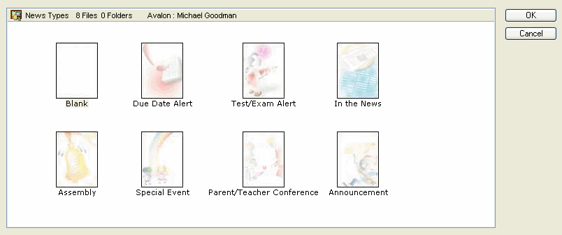 When the teacher creates a new item in the Course Content, Class News, Discussions or Resources area, she chooses from a set of predefined templates. This determines which background will be displayed.