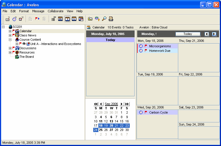 In addition to the public area of the class, the teacher has additional areas that are private to her own view: a Class Inbox and a Roster. In addition, unpublished assignments and lessons can be maintained in the Course Content area. These lessons and assignments are not visible to students until the teacher publishes them.