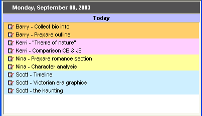 Like calendar events, you can use color to differentiate tasks, or assign a color to each person to differentiate between the tasks of team members.