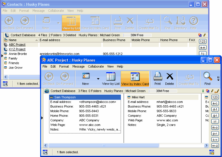 Once Michael has finalized the survey, he creates a mail list and sends it. Since he shares all of his employees' contact databases, he has all of the customers right in his Contacts folder.