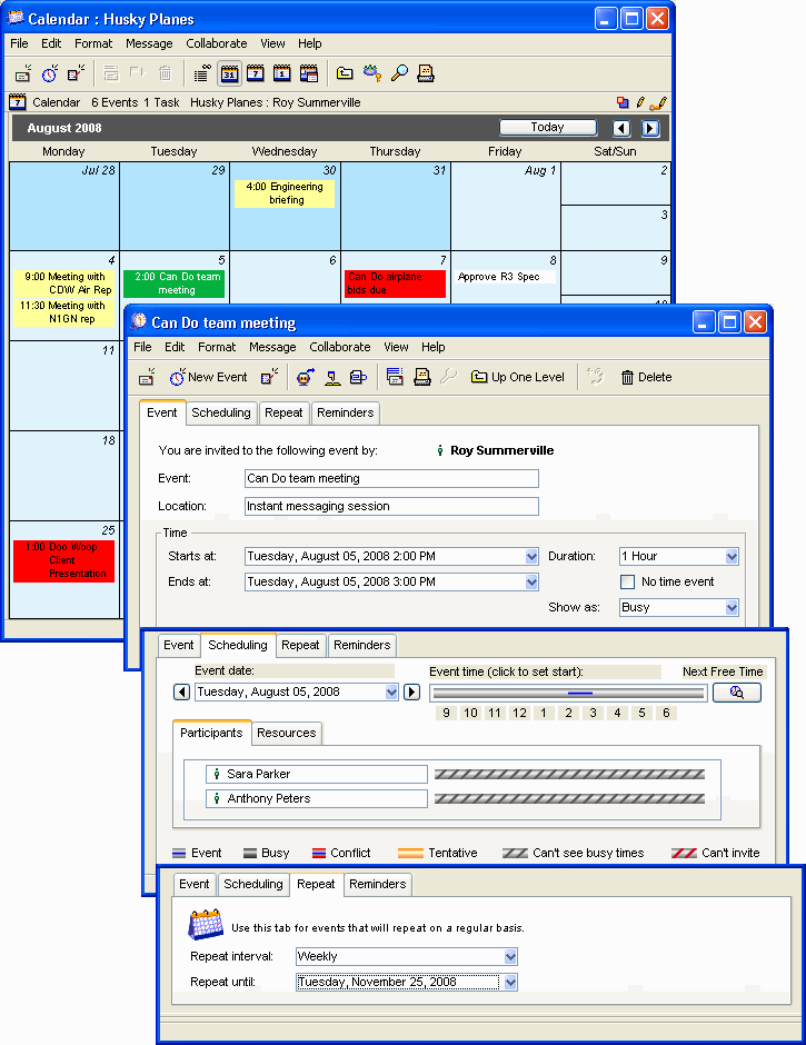 Roy uses his calendar to manage the details of each task.