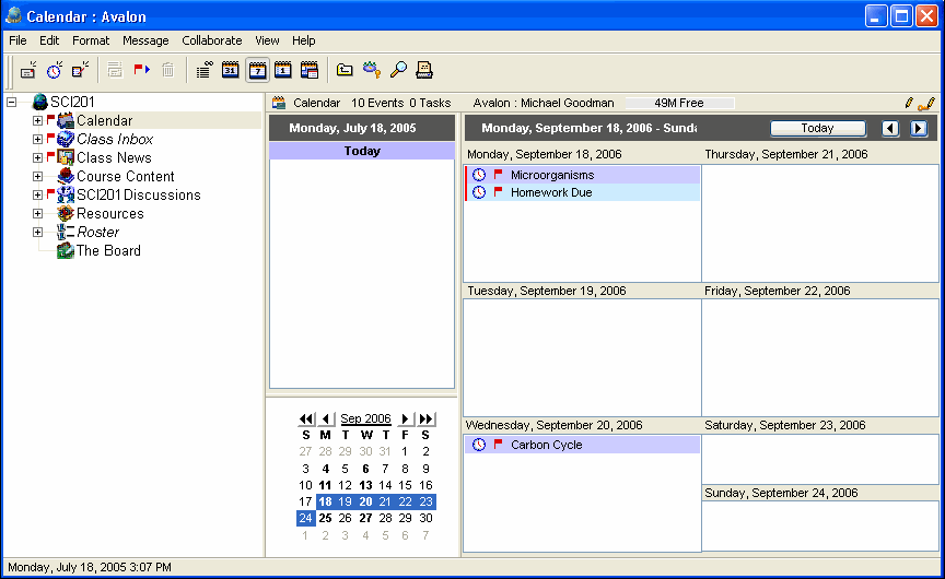 The class calendar in FirstClass ED is a FirstClass group calendar and is used the same way as other standard FirstClass calendars.