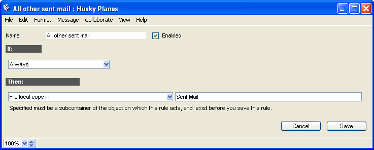 This Send rule automatically files any sent mail that did not meet the above criteria.