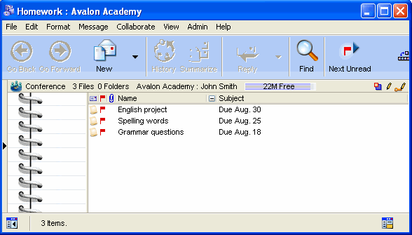 Letters and notes for parents are put in the bottom pane of the window. Here, John can update parents about what students are learning, what may be required of parents, permission forms, and school announcements.
