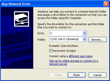 4 At Folder, enter the IP address of the destination machine pointing to the FirstClass Desktop. For example: