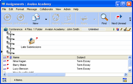 Want an easier way to receive and mark student assignments than carting stacks of paper home and back again? Have students submit their work online. FirstClass gives you complete control over submissions, from the time you receive the work to when it is returned. You can receive all the work in one location, automatically file late work separately, grade the work and return it to students' Mailboxes, and even see who has opened the returned work.