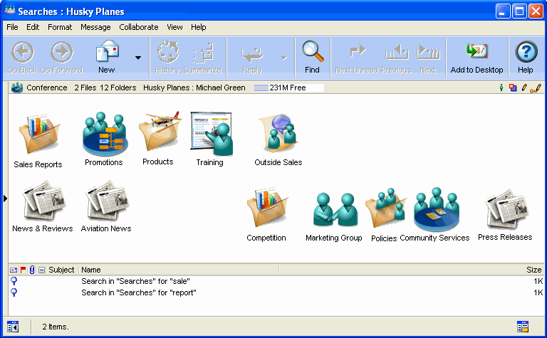 Tired of searching through multiple conferences to find what you are looking for? Want to make locating information easier? Create a Search conference on your FirstClass Desktop and link (alias) your commonly searched conferences and folders to it. Then, when you need to find something, perform a search on just that conference to locate the desired information within any of the aliased conferences and folders.
