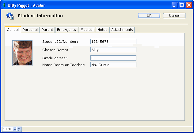 If you need to see a student's information quickly, simply double-click the student's name on the roster and then click Student Information. This brings up all of the student's personal information and contact information, including a student picture (if available).