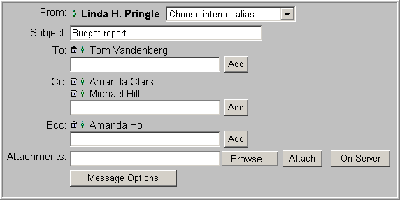 Each page has its own toolbars. Clicking a toolbar button tells FirstClass to perform that command.