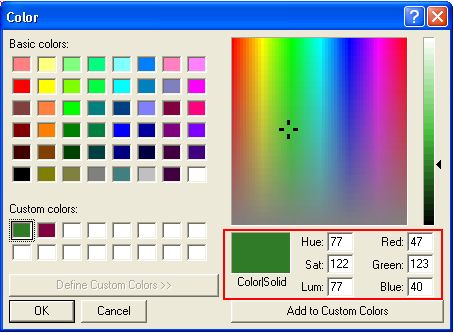 To add each new color to his palette, he clicks Add to Custom Colors.