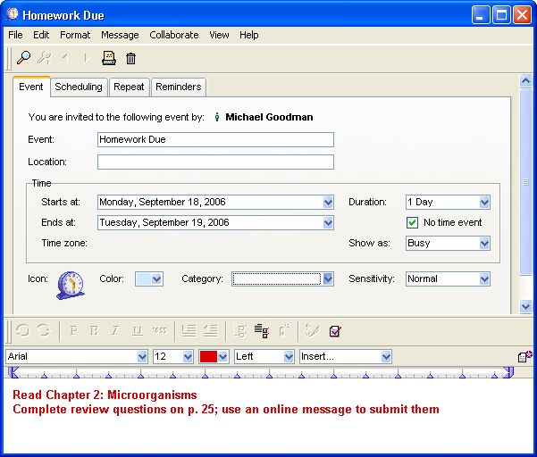 In a traditional class environment, you tell students when assignments and project milestones are due, what is for homework, and when test or special events are scheduled. Students may write the dates in a personal agenda, or in their notebooks. Many times, parents are required to sign the book to acknowledge that they are aware of the assignments.