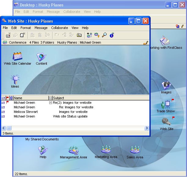 As Michael collects or creates information for the web site or the trade show, he enters it the respective FirstClass documents.