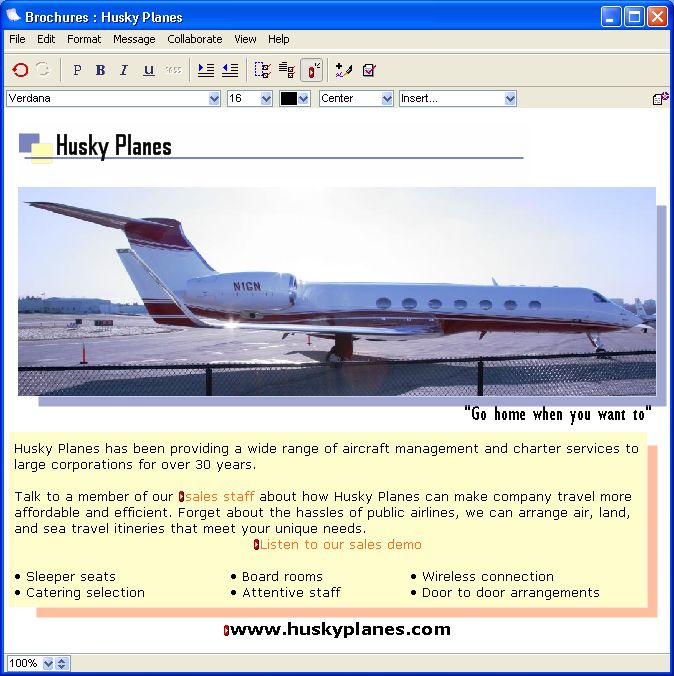 For example, if you are creating a product document, you can choose your font style, and color to put the body of the document together. You can add graphics wherever you want, and even attach a voice message to the document as a wav file. The voice message could be as simple as a short musical tune, such as a jingle, or as complex as the reading of the entire document. This is a great idea if you wish to showcase the product in a conference for others to view.