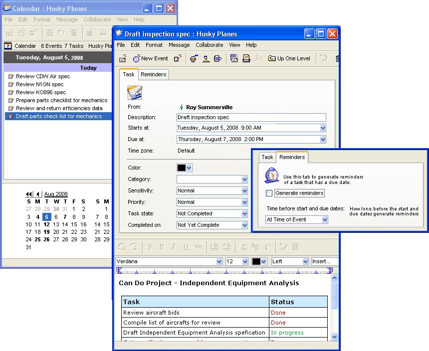 FirstClass helps you manage your tasks from one location. You can use your personal calendar to manage your own tasks, or use a group calendar to centralize the task management.