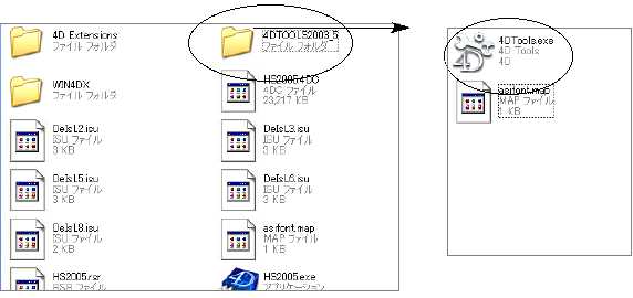 使用中のバージョンにより、 プログラム(×××.4DC)が表示されない場合が有ります。