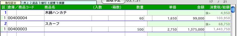 ■伝票入力中の商品マスター登録、及び登録内容の表示