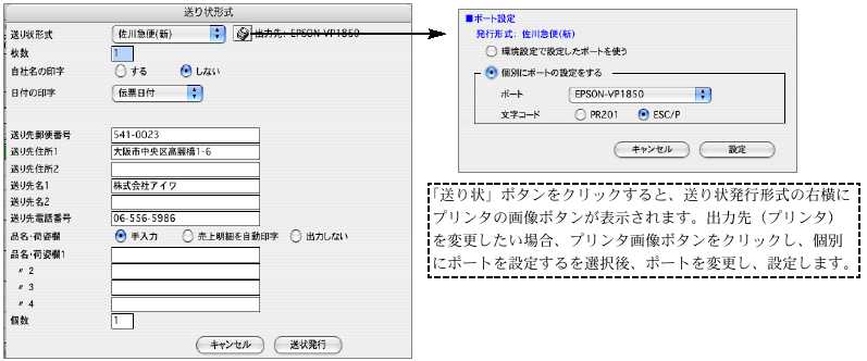 この画面で送り状の形式(ヤマト・佐川...)を選択できます。