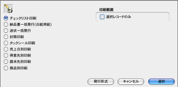 (納品書入力画面で設定の印刷形式で印字されます。変更する場合、「発行形式」ボタンで、印刷用紙の選択をします)