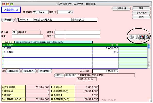伝票訂正や明細の追加・削除は、入力の時と同じように行なってください。