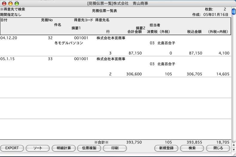 3.検索条件を満たす見積伝票を一覧表示します。