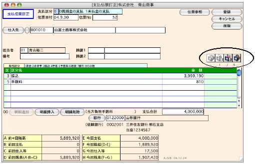 支払処理終了後、「登録」ボタンで、支払伝票入力画面に戻ります。