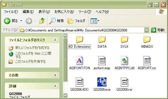 ※QS2006より古いバージョンを使用されていて、QS2006にバージョンアップする場合は、QS2006インストール後、旧バージョンで使用していたデータ(拡張子が「.4DD」のファイルと、同名で、拡張子が「.4DR」のファイルの両方)をQS2006のデータフォルダ内にコピーする作業を行って下さい。