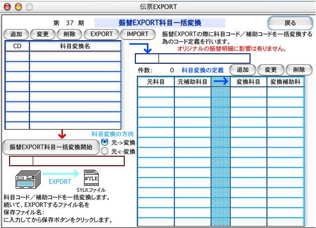 もし、EXPORTするファイルの科目コードを変更したい場合、「科目一括変換」の処理をします。