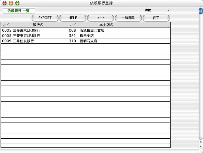 1.設定メニューから「依頼銀行登録」を選択しますと依頼銀行一覧が表示されます。