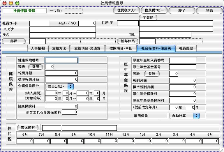 「社会保険料・住民税」タブをクリックすると、 社会保険料・住民のページが表示されます。