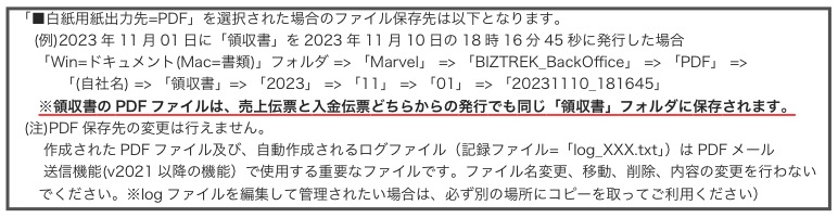 ■白紙用紙出力先=「PDF」を選択した場合、PDFファイルは「領収書」「領収書(控)」で別ファイルとして作成