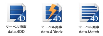 ※尚、拡張子 「.4dd」と.「.4DIndx 」「.Match」部分は「半角」入力文字です。全角になっている場合、データを正しく認識できなくなりますので、ご注意ください。