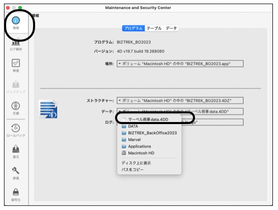 1.BackOfficeプログラムは、最後に開いたデータファイルを記憶していますので、最後に開いたデータファイルが、圧縮・修復直後は、通常通り