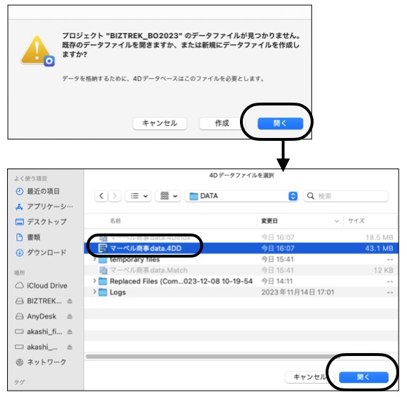 を表示しますので、貴社データが保存されている場所を指定後、圧縮・修復後のデータファイルを選択