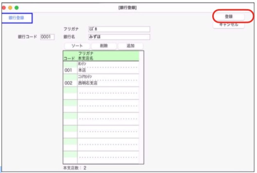 本支店のIMPORTを行う場合、先に銀行登録が必要です。