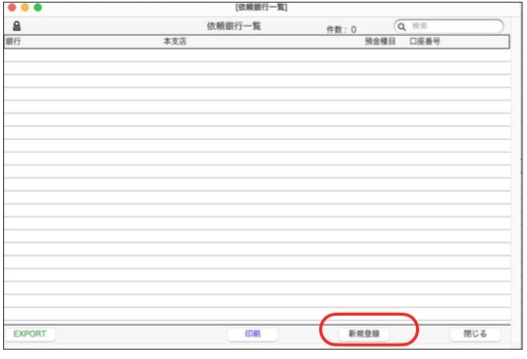 一覧画面の「新規登録」ボタンをクリックすると、依頼銀行登録画面が表示されます。