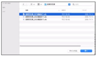 2.「開く」の画面が表示されましたら、読み込みするファイルの保存先を指定後、ファイルを選択して「開く」ボ タンをクリックします。